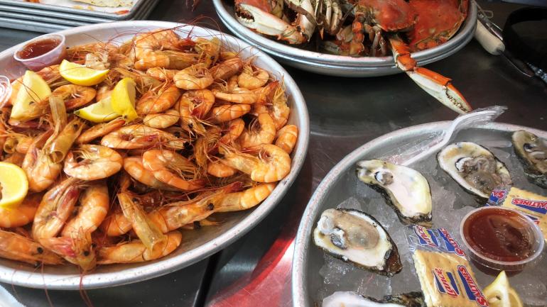 Kenney 海鲜市场供应的新鲜虾、牡蛎和螃蟹拼盘