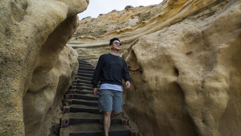 沿着台阶走下海滩